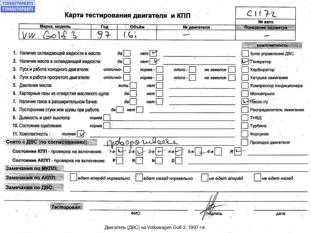 | Череповец | 1997 | Маркировка двигателя ABF | |||